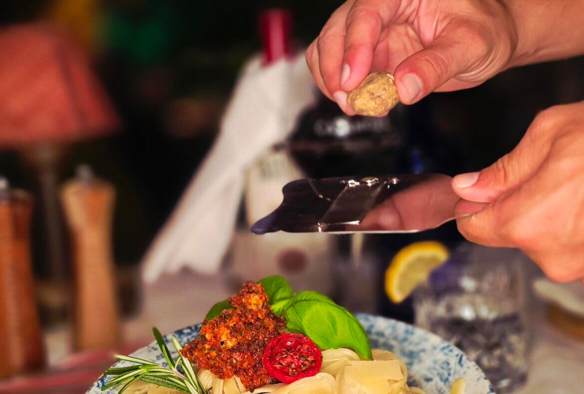 genieße unsere TAGLIATELLE al TARTUFO mit frisch geriebenem Trüffel auf schmalen Bandnudeln in feiner getrüffelter Parmesan-Sahne-Sauce 💏 BUON APPETITO 💙